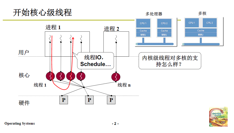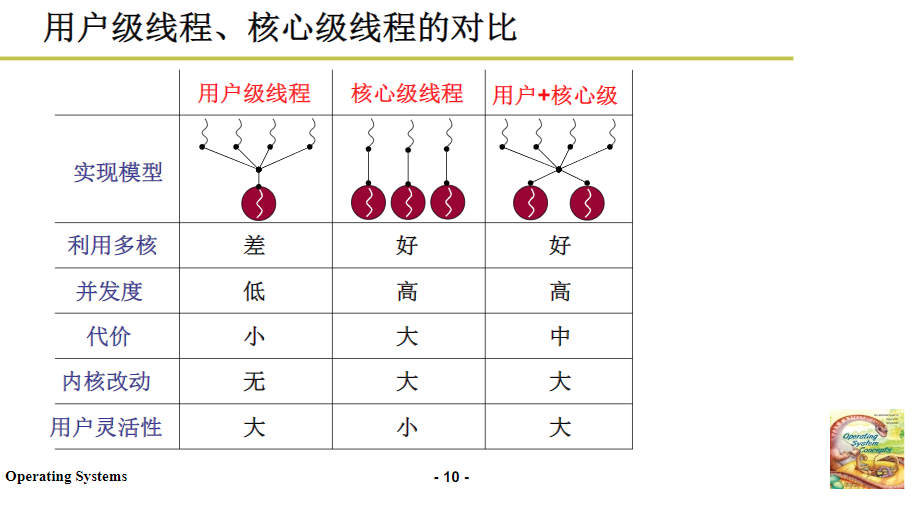 为了充分应用多核的CPU,应该使用内核级的线程。可以给每个CPU并行使用内核线程,在用户级线程的时候,操作系统无法感知,所以用户级线程同一时间只能使用一个核心。